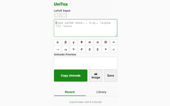 يدعم الملحق مجموعة واسعة من رموز الرياضيات في LaTeX، بما في ذلك الحروف اليونانية والمشغلين وأوامر النمط. يمكن للمستخدمين بسهولة إدراج الرموز باستخدام أداة اختيار بصرية أو نسخ الناتج بنقرة واحدة، مما يؤدي إلى نص Unicode نظيف وجاهز للنسخ. بالإضافة إلى ذلك، يوفر UniTex ميزة تاريخ حديث للوصول السريع إلى المقاطع المستخدمة سابقًا، ولا يتطلب أي إعداد، مما يجعله خيارًا مثاليًا لأي شخص يبحث عن حل بسيط لتنسيق الرياضيات.